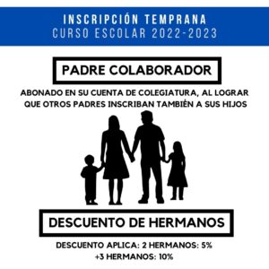 La inscripción temprana es el período destinado de promoción para todos los interesados en las Inscripciones al Curso Escolar 2022 – 2023.